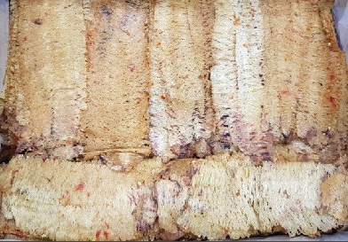 | Cá Thiều miếng CH | 90% cá Thiều khô ghép, 10% gia vị (muối, đường, bột ngọt, tiêu, ớt) | 260.000 |