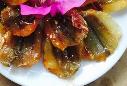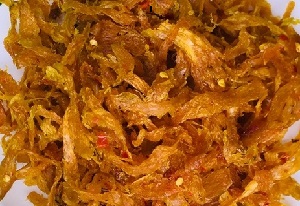 | Cá Mai sốt chanh phi tỏi | 95% Cá Mai khô, 5% gia vị (muối, đường, bột ngọt, ớt, chanh, tỏi) | 230.000 |