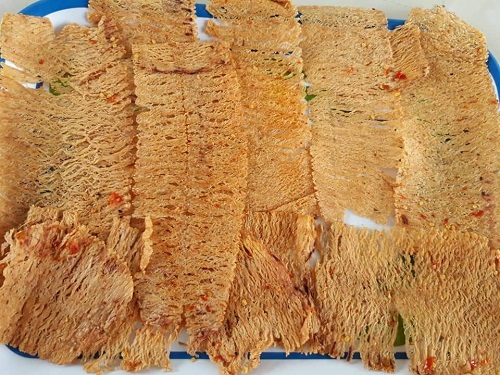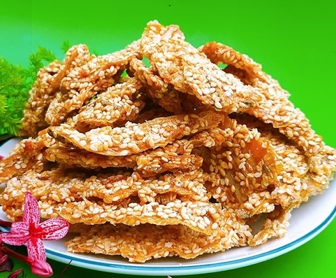 | Cá bò rim mè | 80% khô cá bò, 10% mè, 10% gia vị (đường, muối, bột ngọt, ớt, tỏi) | 180.000 |