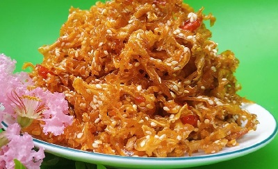 | Gỏi mực xé sợi | 85% Mực khô xé sợi, 10% rau quả (lá chanh, đu đủ, cà rốt), 5% gia vị (đường, muối, bột ngọt, ớt, tỏi, hành) | 295.000 |