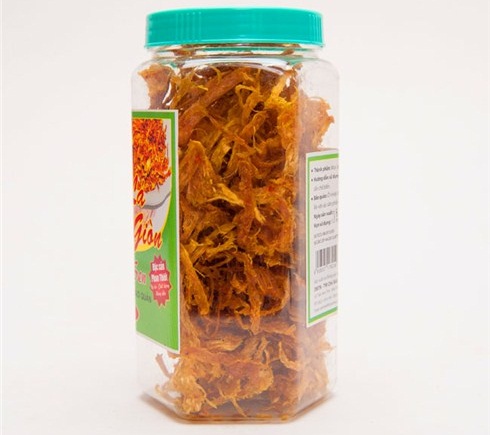 Mực xé giòn có hương vị cay cay, mằn mặn, ngòn ngọt, dậy mùi thơm của mực rất thích hợp cho những chuyến đi dã ngoại hay những tiệc ăn chơi ngày tết.