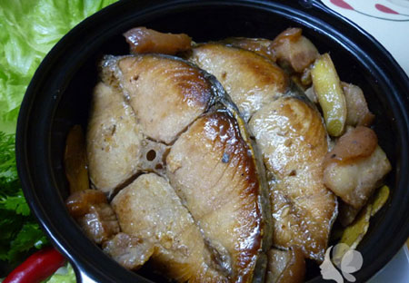 Thịt chín nhừ, miếng cá khô chắc, đậm đà, thơm nức mùi gừng riềng. Khi ăn các bạn hãy gắp cá kèm 1 miếng gừng hoặc một miếng riềng để cảm nhận hết hương vị đặc biệt của món ăn này nhé.