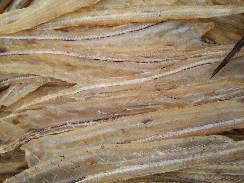 Cá khoai có thân dài trung bình khoảng 10-27cm, hình ống hơi dẹp, có màu trắng đục. Cá khoai là loại cá ít xương, chỉ có một đường sụn chạy dọc theo sống lưng, thịt ngọt nhưng mềm bở nên khó giữ được tươi lâu khi ra khỏi nước biển. Bởi thế người dân chài nghĩ ra cách chế biến cá khoai thành khô để giữ cá được lâu nhất.