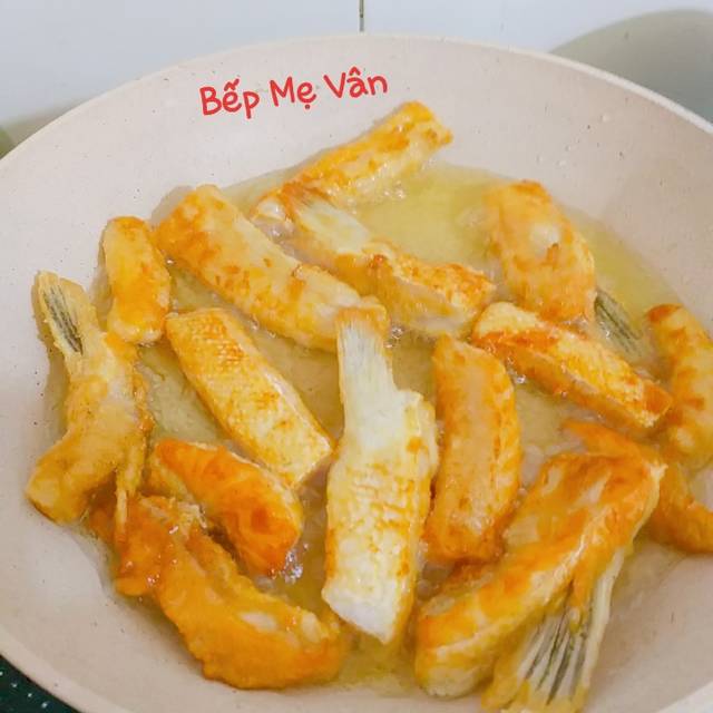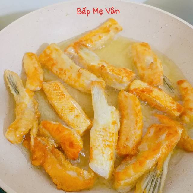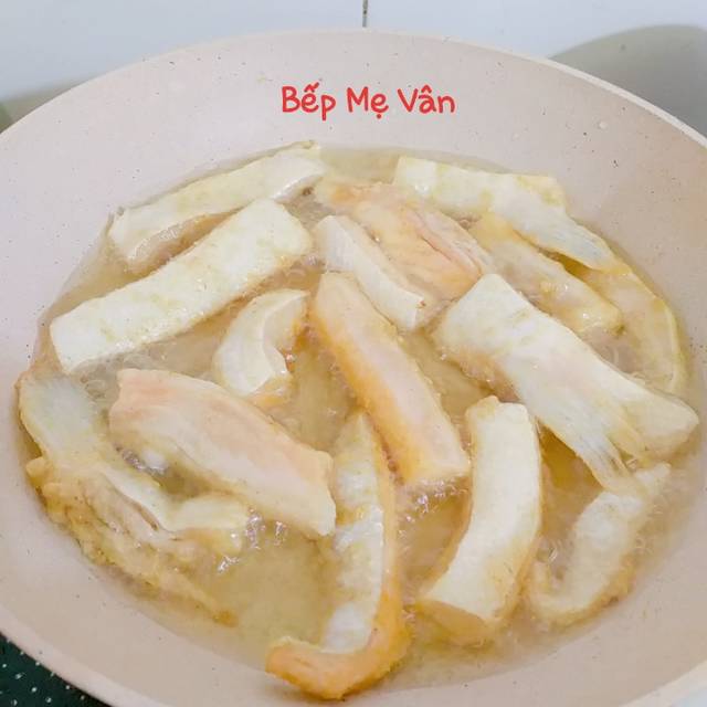 - Bắc chảo lên bếp cho ít dầu ăn vào chờ dầu nóng cho lườn cá hồi vào chiên vàng đều 2 mặt rồi vớt ra giấy thấm dầu.