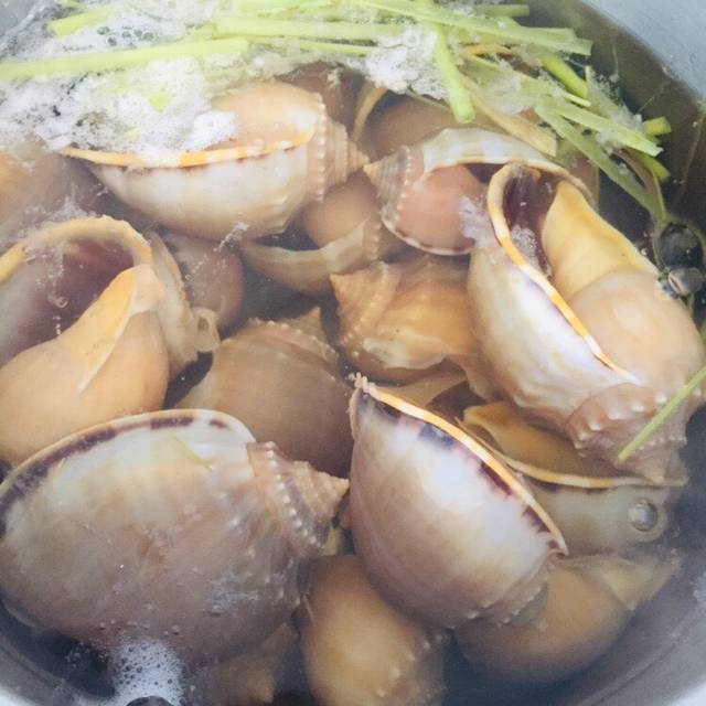 Sả rửa sạch, cắt khúc. Cho ốc và sả vào nồi, đổ nước ngập mặt ốc rồi đun sôi cho đến khi thấy thịt ốc trồi ra khỏi vỏ là chín. Tắt bếp, bỏ nước, giữ lại ốc. Dùng tay kéo thịt ốc ra. Khi kéo được ốc ra khỏi vỏ thì phần thịt ốc có một phần bọc có một cục cứng cứng, mình thường moi cục đó ra và bỏ đi. Phần bóc và làm sạch ốc là phần lâu nhất!