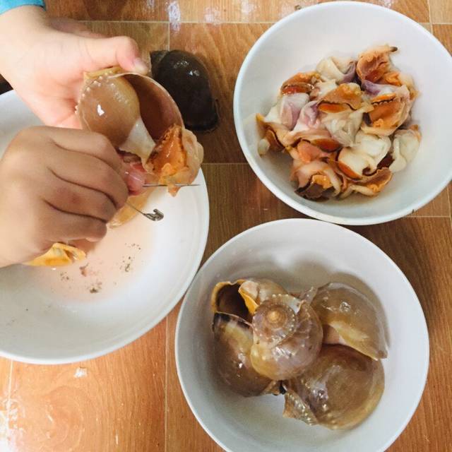 Mua được ốc tỏi siêu to, và mới hiểu tại sao nó được gọi là ốc tỏi: vì thịt ốc toàn mùi tỏi không! Lạ ghê hen!
