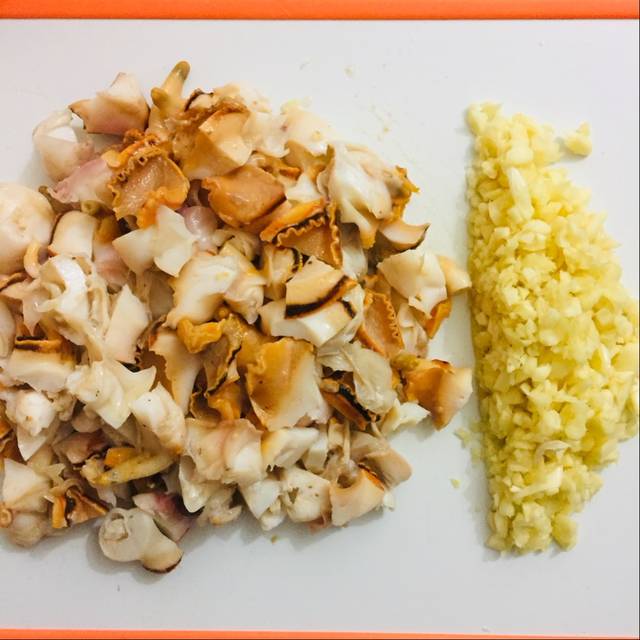 Tỏi bóc vỏ, băm nhỏ. Ốc cắt miếng nhỏ cho vừa miệng.