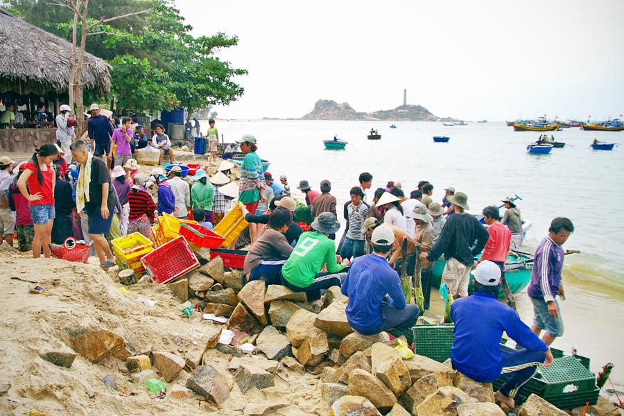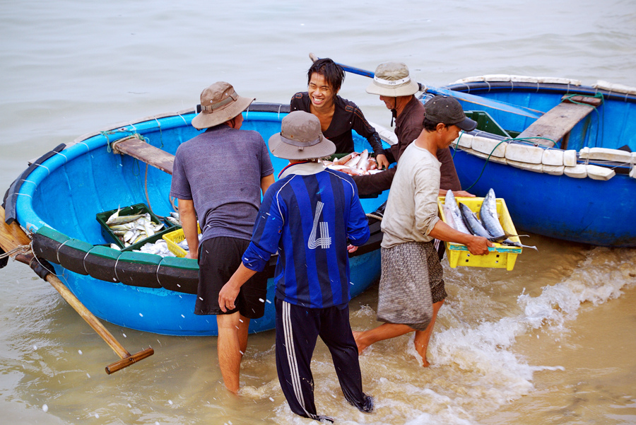 Mỗi sáng, bên cung biển dọc các làng chài trở nên rộn ràng. Nào là vợ đợi chồng, con đợi cha, mẹ đợi con, em đợi anh... Tất cả đều chờ người thân của mình mang lưới vào bờ để cùng nhau gỡ cá cho nhanh rồi đem kịp bán ở các chợ gần xa. Hôm nào trúng luồng, cá đóng trắng lưới, cả nhà tập trung gỡ đến gần trưa mới xong, niềm vui hớn hở trên từng khuôn mặt.