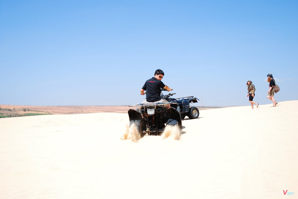 Khi tham quan đồi cát trắng quý khách có thể thoả sức vui chơi trựợt cát bằng những tấm ván trượt thuê tại điểm du lịch, thuê môtô địa hình chạy lên đỉnh đồi ngắm toàn cảnh hoàng hôn, hay bình minh trên sa mạc cát đầy thơ mộng mang một vẻ đẹp huyền ảo hút hồn du khách. Những đồi cát luôn thay đổi hình dạng liên tục theo từng giờ, từng ngày bởi những cơn gió mạnh thổi bay mặt cát và bồi đắp khiến chúng không có hình dạng nhất định.